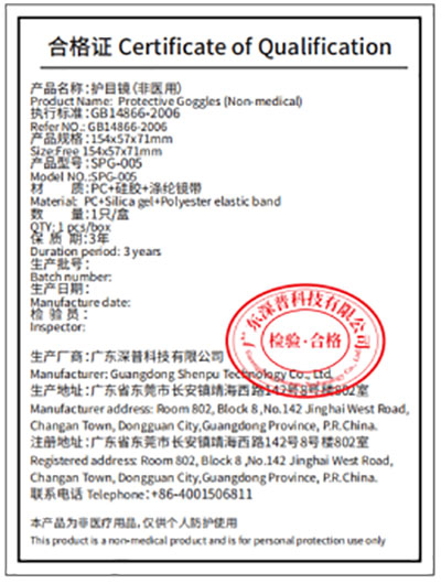 3.Kaitseprillid (ilma ventilatsiooniavadeta) Parameter specifications