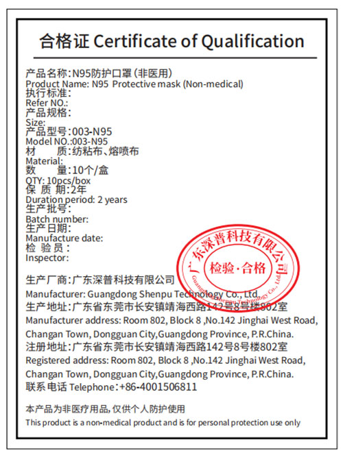 N95 kaitsev mask(Kupi kujuï¼ ‰ -kvalifikatsiooni tõend